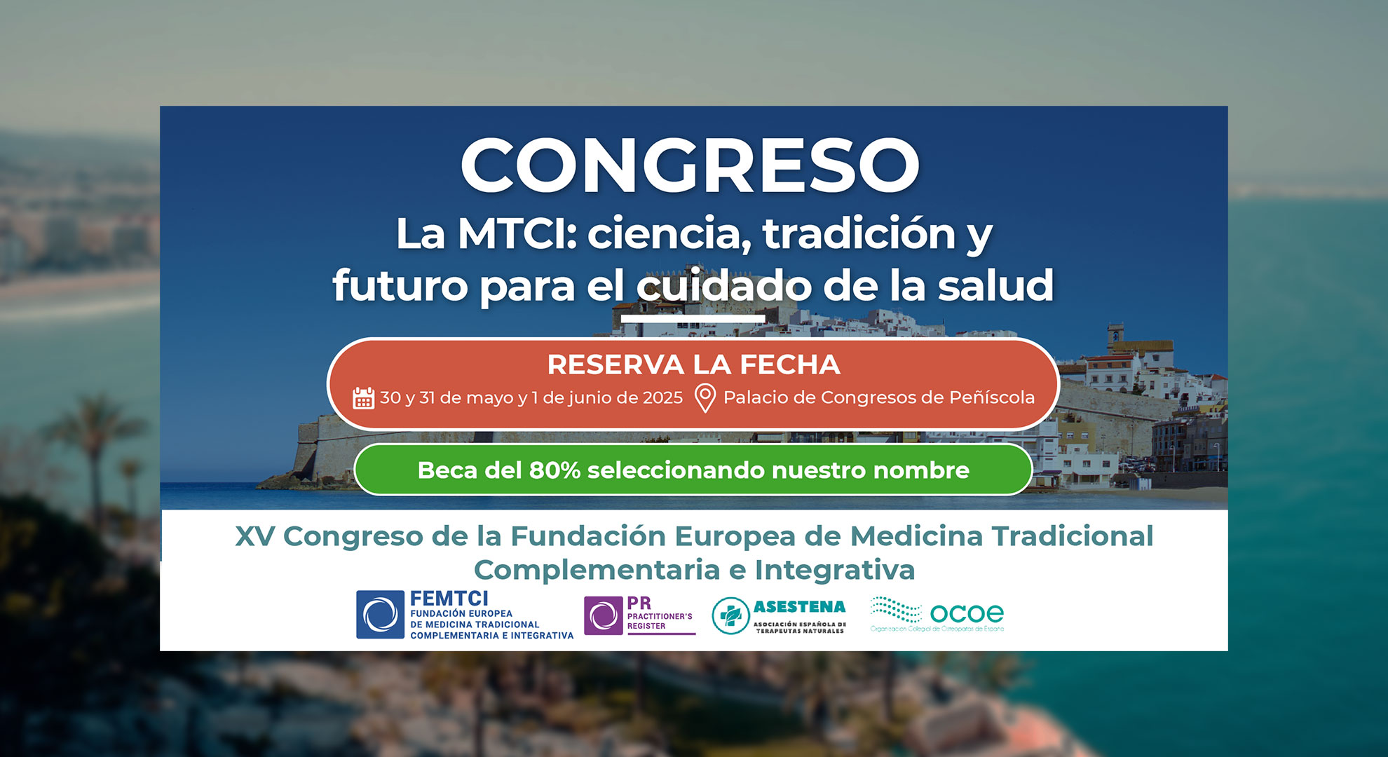 Únete al evento de referencia en Medicina Tradicional Complementaria e Integrativa (MTCI), donde profesionales, expertos y apasionados del sector se reunirán en la hermosa ciudad de Peñíscola.